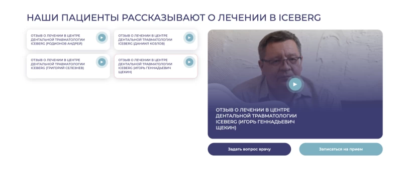 - Центр дентальной травматологии Iceberg является ТОП 2 в рейтинге лучших стоматологических клиник Москвы, занимает 2-ое место в профессиональном рейтинге STARTSMILE и входит в ТОП-5 рейтинга лучших клиник России по версии ИД «Коммерсант». Во главе клиники — Болячин Алексей Вячеславович, кандидат медицинских наук, Past president эндодонтической секции СтАР, главный редактор журнала «Эндодонтия», член Американской эндодонтической ассоциации, и Тишкина Ольга Сергеевна, кандидат медицинских наук, действительный член Международной ассоциации дентальной травматологии.