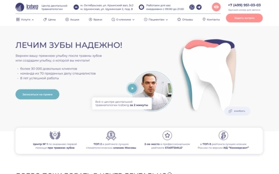 Центр дентальной травматологии Iceberg является ТОП 2 в рейтинге лучших стоматологических клиник Москвы, занимает 2-ое место в профессиональном рейтинге STARTSMILE и входит в ТОП-5 рейтинга лучших клиник России по версии ИД «Коммерсант».