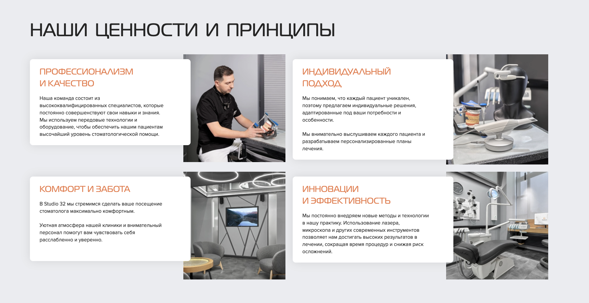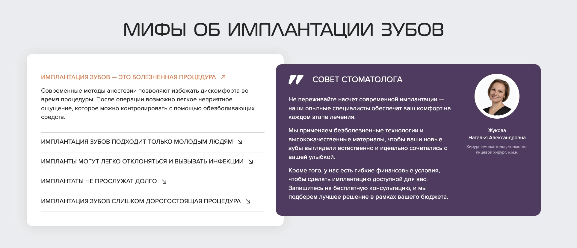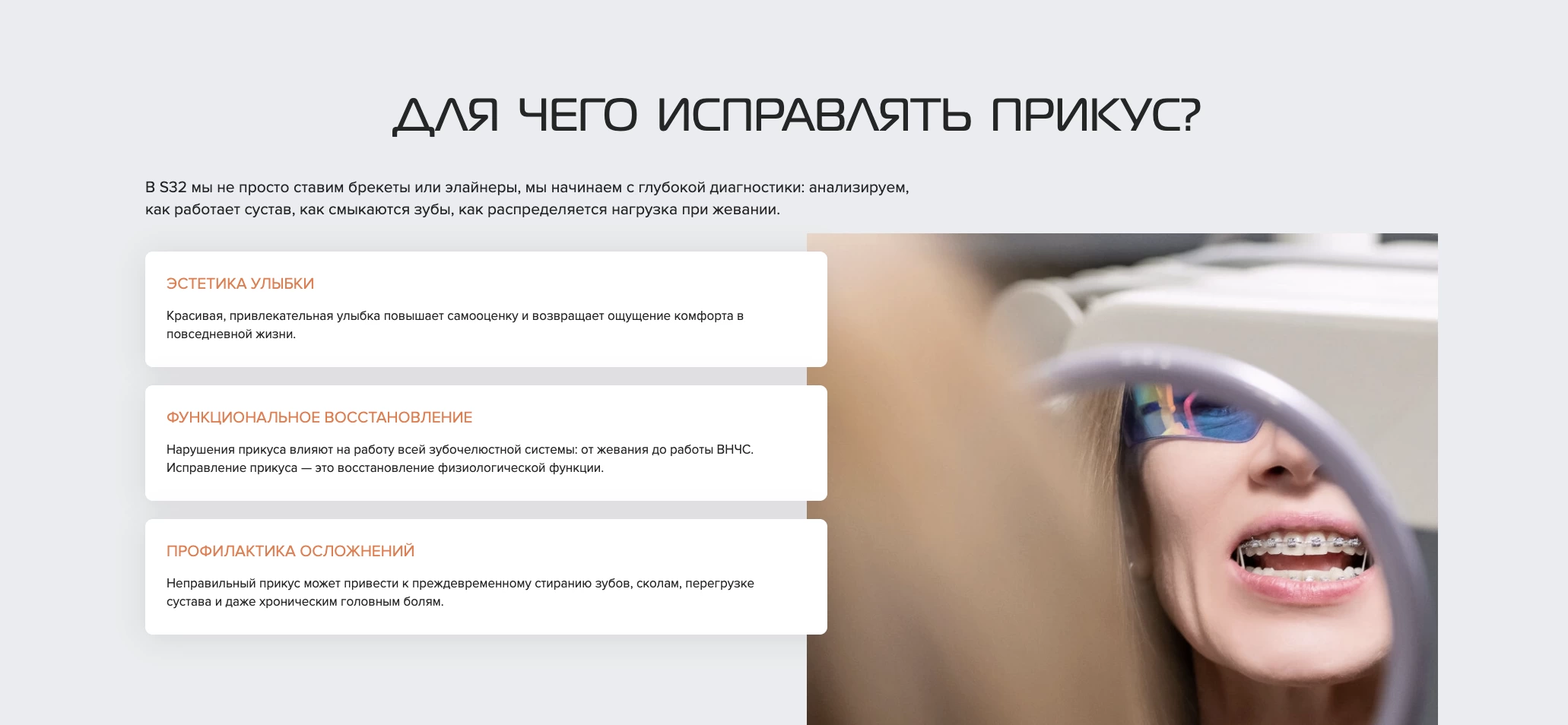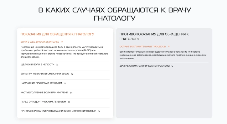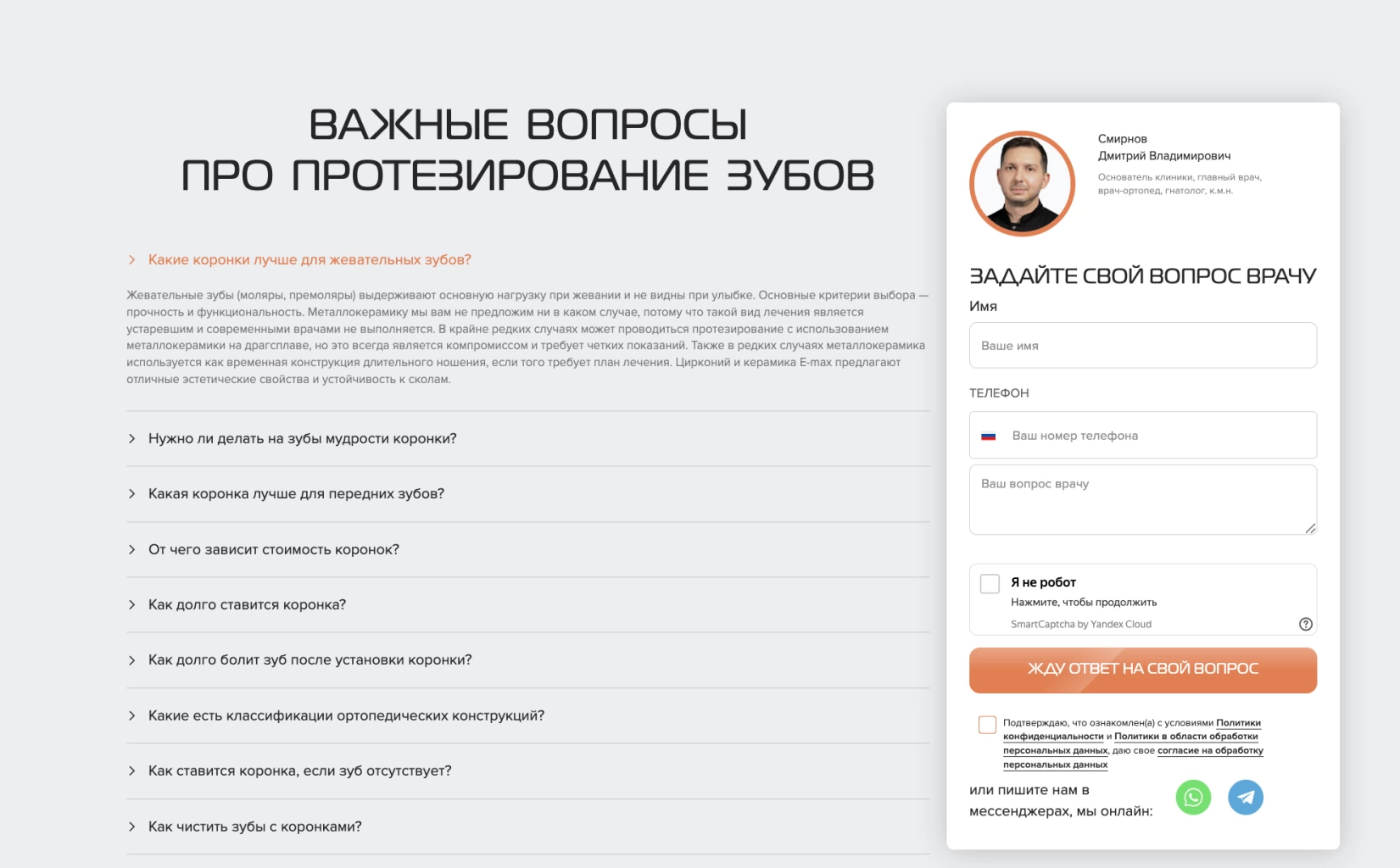 Всё выглядит так же, как ощущается: удобно и дорого. Поисковики видят экспертный контент, пациенты получают понятные ответы и визуальные доказательства результата, а конверсионные блоки мягко подводят к записи.