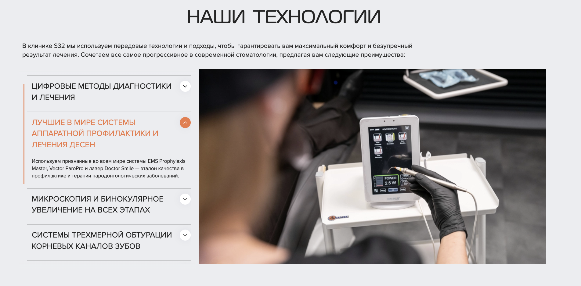 Медицинские сайты попадают под категорию YMYL — поисковики оценивают их особенно строго. Мы выстроили контент так, чтобы на каждой странице была видна реальная компетентность: авторство врачей, научные степени, ссылки на публикации, кейсы с фото до/после. Благодаря включенности команды клиники мы совместно создали уникальный экспертный контент, понятный и людям, и поисковикам.