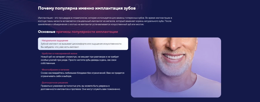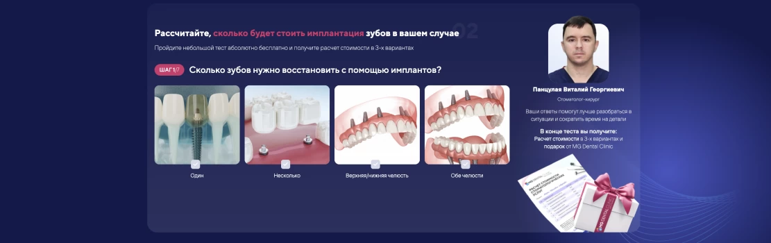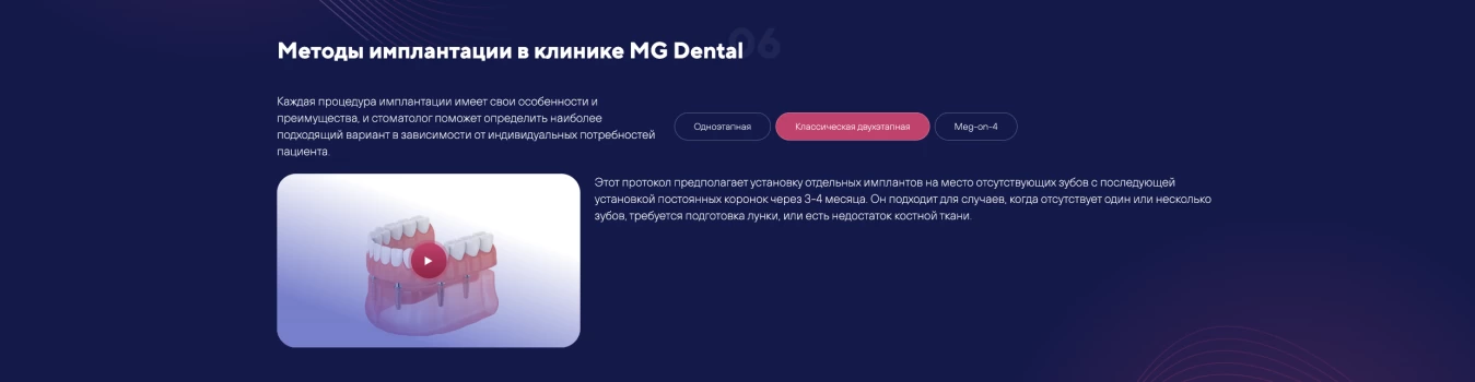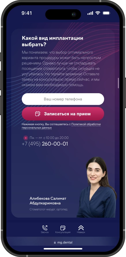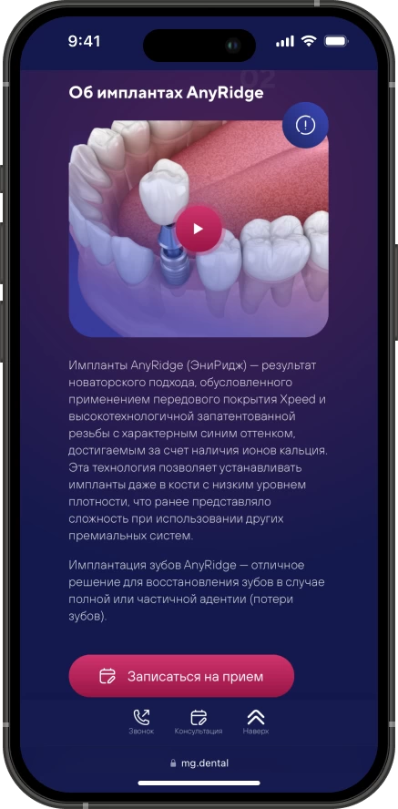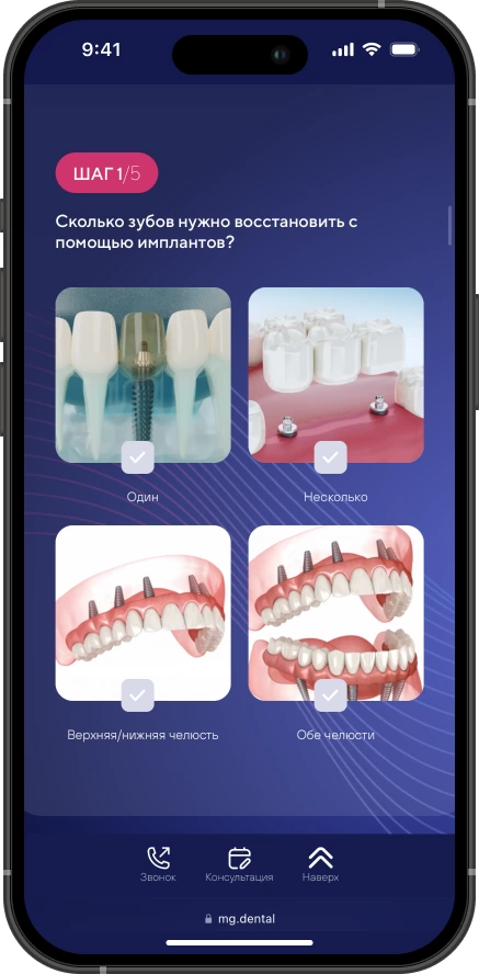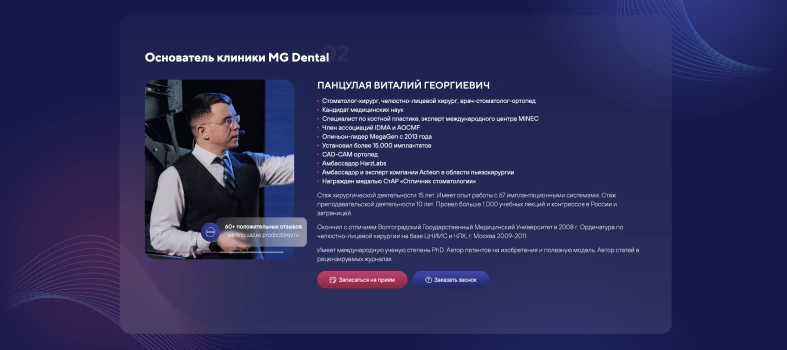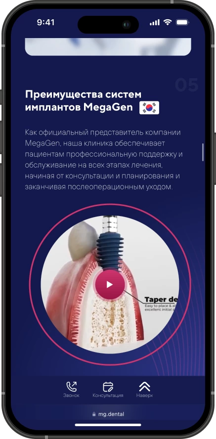 Мы проанализировали лидеров отрасли, чтобы понять, какие страницы и блоки сайта будут конвертировать лидов в пациентов. Мы изучили десятки конкурентов, отобрали лучшие решения и внедрили их на сайт MG Dental.