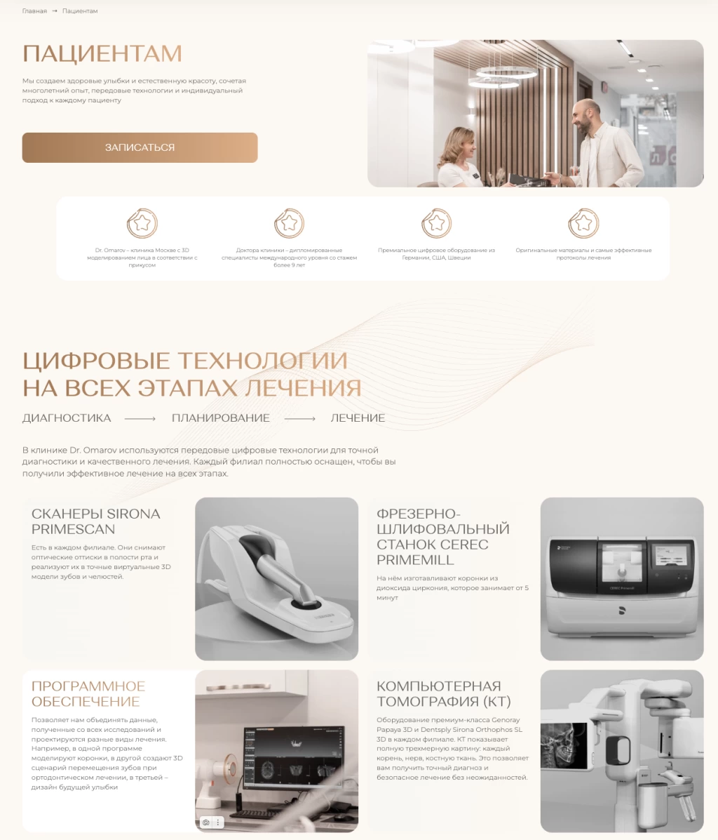 Мы начинаем SEO-работу до запуска сайта — на этапе проектирования структуры. Для Dr. Omarov это было особенно важно: клиника работает одновременно в двух нишах, каждая из которых конкурентна сама по себе.
